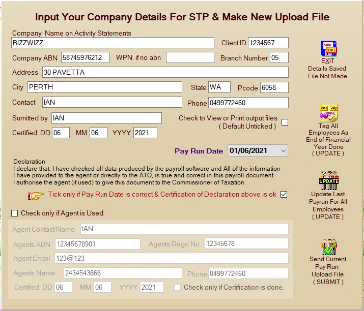 Bizz Wizz Software has endeavoured to make this software as accurate as possible. As payroll has many variations that may not have all been for seen at the time of the program's creation, Bizz Wizz Software does not take any responsibility or liability in any way for results of monies paid using this software. All results of financial or other need to checked by the program user to ensure the integrity of all output from this software. Taxation and work place agreement changes etc. may invalidate the output of this software and it is the responsibility of the program user to be aware of this.